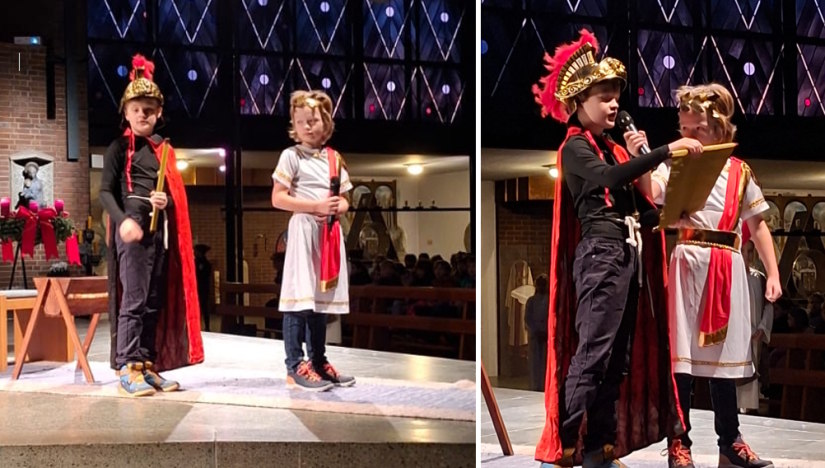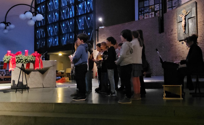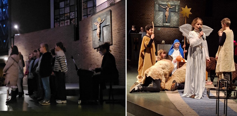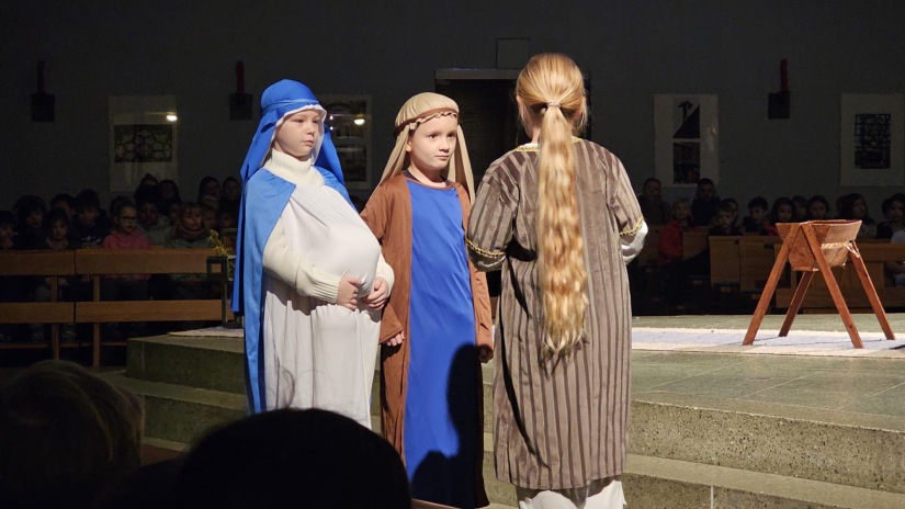 Die katholische Religionsgruppe aus dem Jahrgang 4 hat am 18. Dezember - unter der Leitung von Herrn Haiduk - beim Adventsgottesdienst der Barbaraschule ein Krippenspiel aufgeführt. Die Kinder haben die Weihnachtsgeschichte soooo schön vorgespielt, dass es mucksmäuschenstill in der vollbesetzten Barbarakirche war.