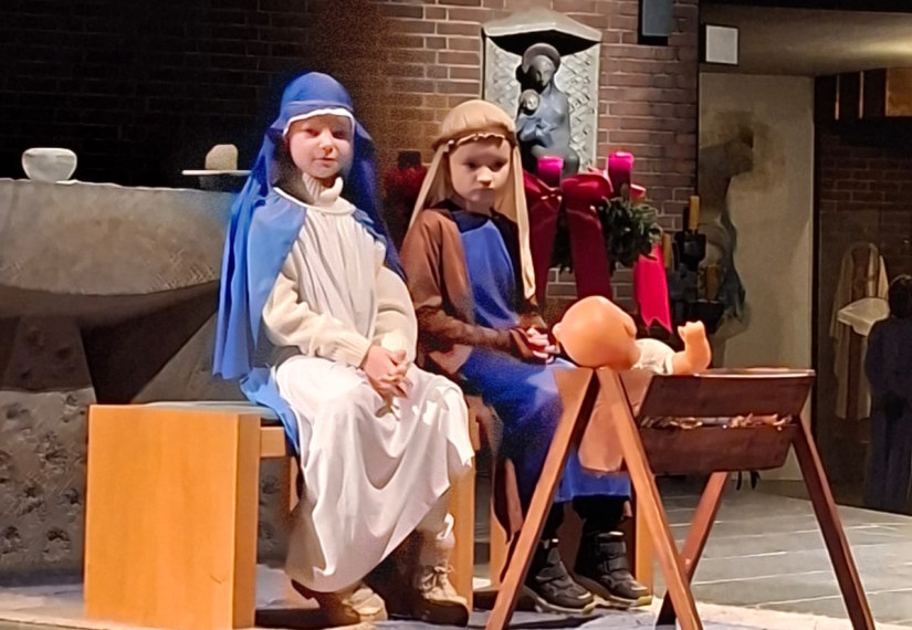 Im polnischen Weihnachtslied "Lulajze Jezuniu" wurde das Krippenspiel musikalisch durch die Erdmännchenklasse noch einmal zusammengefasst. Der Adventsgottesdienst endete mit dem Lied "Winterzeit" - vorgetragen von der Drachenklasse - und wies uns auf die frohe Botschaft des Weihnachtsfestes hin: "Das Christkind kommt bald!"