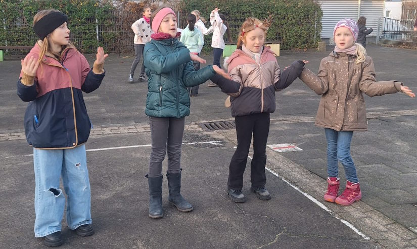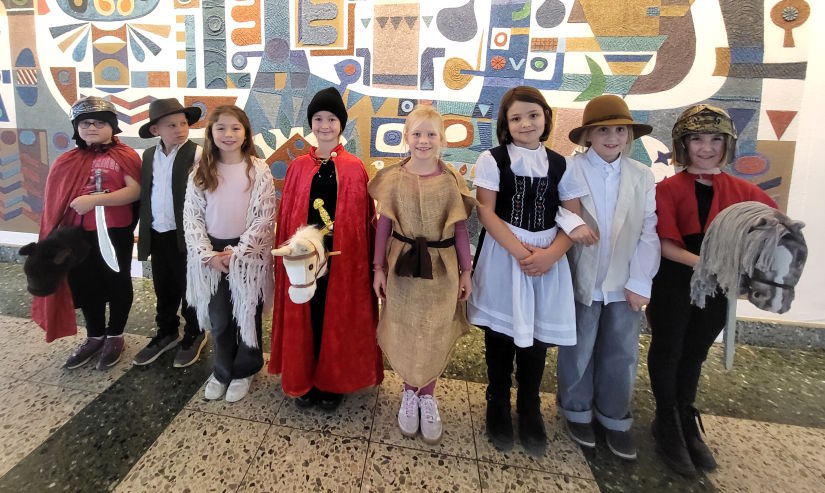 Eine Woche später führten die Kinder das Martinsspiel noch zweimal in der Aula der Barbaraschule auf, zuerst für die Klassen 1 und 4, danach für die Klassen 2 und 3.