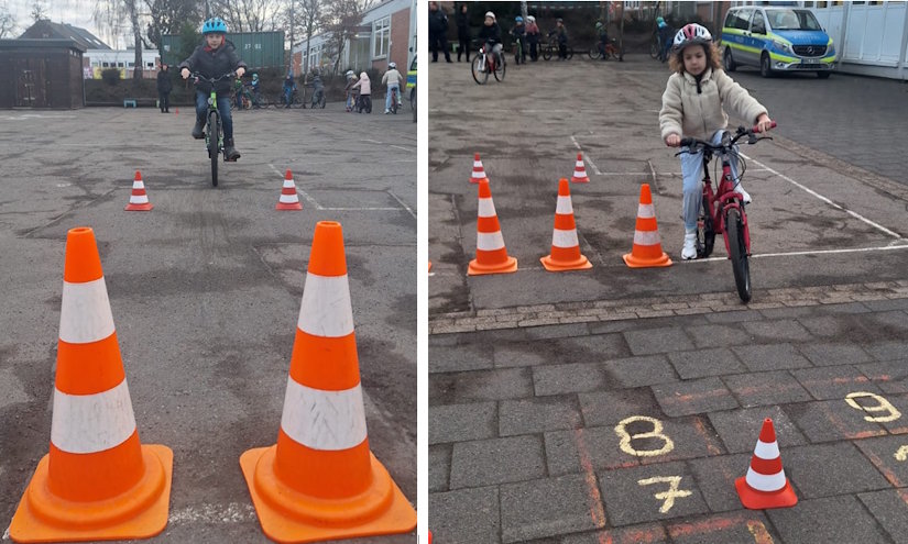 Der Schulhof verwandelte sich kurzerhand in einen kleinen Verkehrsübungsplatz – und die Drachen meisterten die Aufgaben mit Bravour.