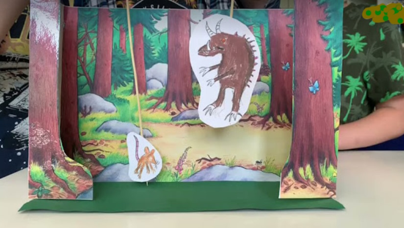 Heute wurden wir Grüffelo-Kinder zu echten kleinen Schauspielerinnen und Schauspielern. Nachdem wir unsere Stabpuppen gebastelt haben, konnten wir einzelne Szenen oder auch die ganze Grüffelo-Geschichte vor einer Wald-Kulisse nachspielen.
