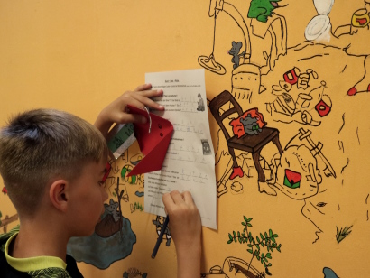 In der Klasse angekommen haben wir Namensschilder gebastelt, unsere Lesetagebücher bekommen und natürlich angefangen, das Buch unseres Projektes zu lesen. Wir durften beim Vorlesen lauschen und auch selber lesen. In unserem Lesetagebuch haben wir einige Aufgaben zu dem Inhalt der ersten Seiten bearbeitet und dann ging es auch schon in die Pause.