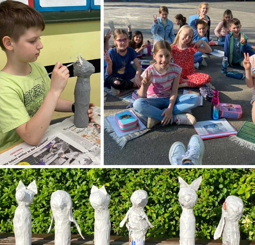 Heute gab es nach dem gemeinsamen Singstart in der Aula eine schöne Draußen-(Vor-)Lesezeit bei strahlendem Sonnenschein! Darüber haben sich auch unsere magischen Kleistertiere gefreut, die wir zum Trocknen im Sonnenbad mit auf den Schulhof genommen haben.