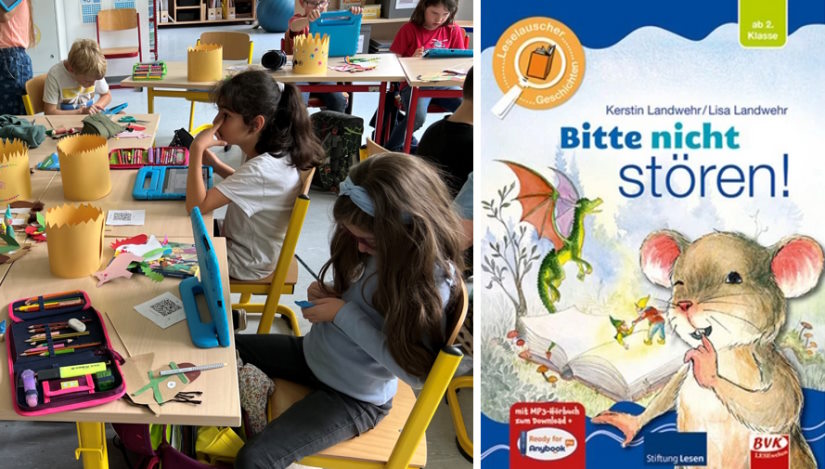Heute startete der letzte Projekttag in den Klassen. Wir haben unser in der Buchausstellung ausgesuchtes Buch geschenkt bekommen und konnten es uns natürlich nicht nehmen lassen, direkt gemütlich darin zu stöbern.