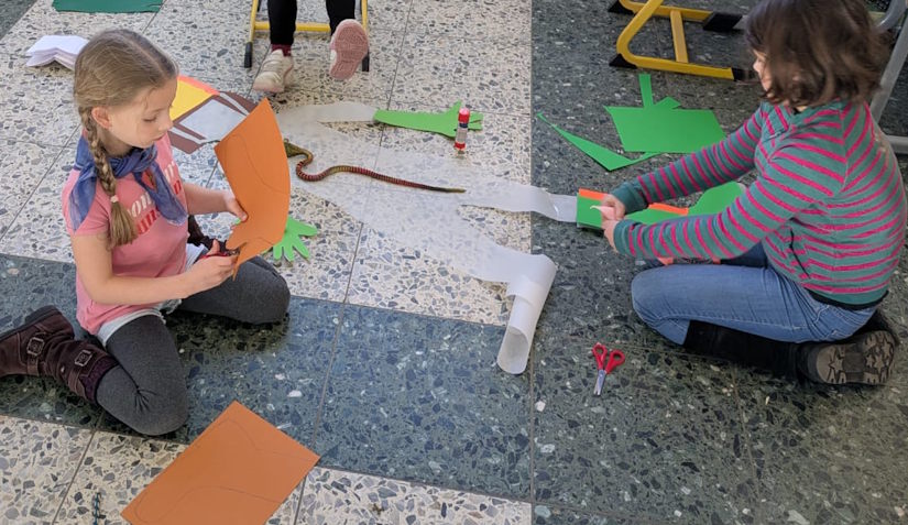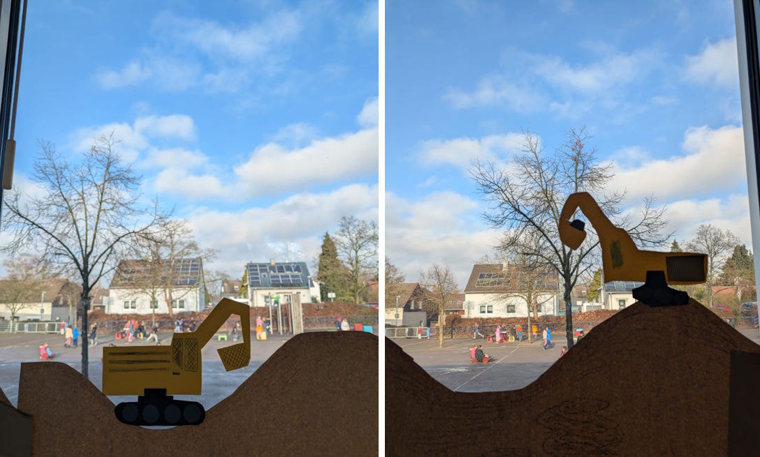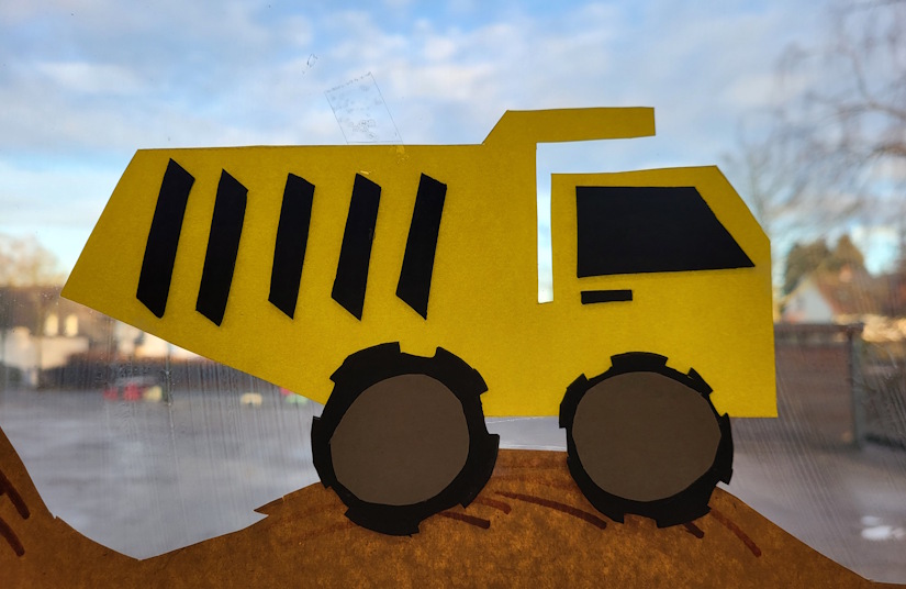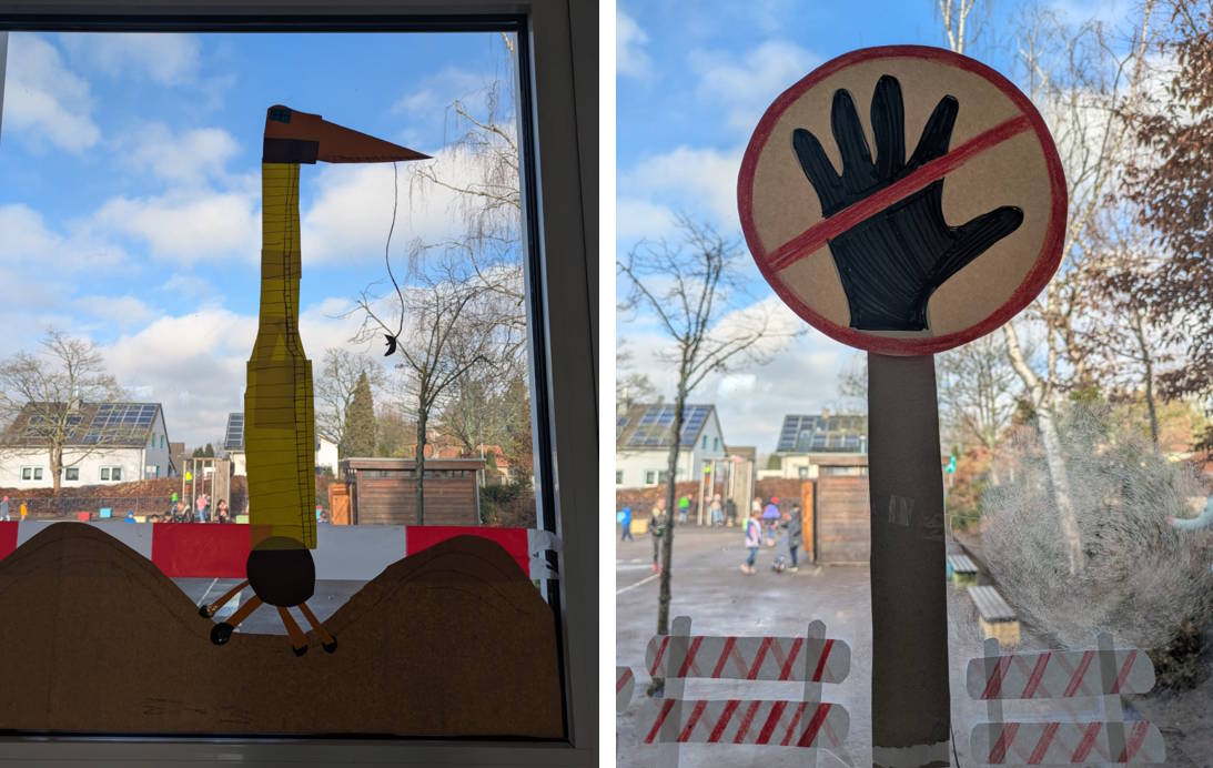 Sogar Bauarbeiter haben die Kinder gebastelt, klar zu erkennen an ihrer Sicherheitskleidung mit Warnwesten und Helmen.