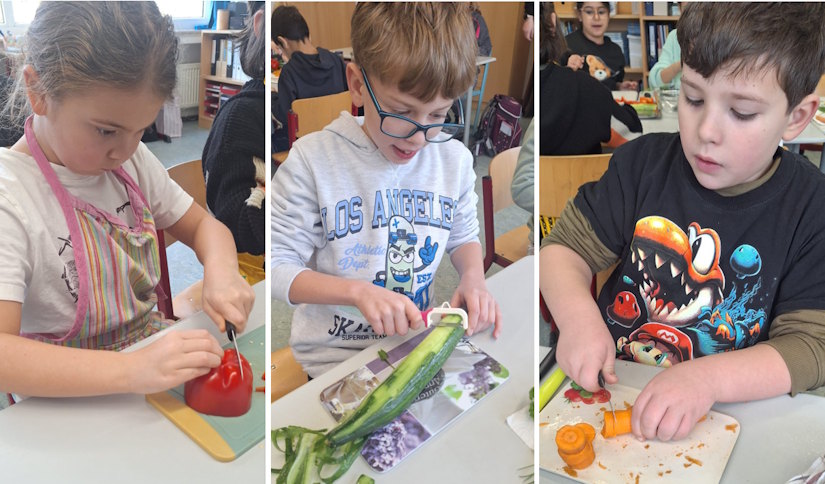 In der Drachenklasse wurde es lecker, bunt und ein kleines bisschen spannend: Die Kinder haben erfolgreich den ersten Tag des Ernährungsführerscheins absolviert! Ausgestattet mit Schürzen, guter Laune und viel Neugier ging es ab an das Schneidebrettchen.