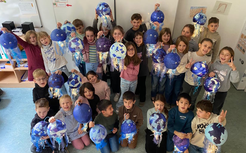 Auch bei den Erdmännchen wurde fleißig an den Laternen für St. Martin gearbeitet. Wir haben dieses Jahr toll leuchtende Quallen gebastelt.